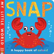 A red crab “shock[s]” a blue fish, “surprise[s]” a green turtle, and encounters a yellow sea horse. Claw-shaped die cuts appear on each recto in ever decreasing sizes to provide a sensory experience for the youngest readers. This also has the effect of pinning the crab in claws-up position in every scene, with backgrounds and sea flora and fauna changing to provide some compositional variety, and his varied facial expressions also help to make up for this. Scientifically preferred terms, such as pink “sea jelly” (which smiles seraphically) and orange “sea star,” are included in the bland, unevenly scanning rhymed couplets that are meted out on each spread: “Green sea turtle cannot believe her eyes / when crab snap snaps—what a surprise!” The saucy crab finally gets his comeuppance when a gray shark appears on the scene, making the crab scuttle into hiding. The graphically clean imagery features a color palette that is appropriately watery, but the black, sans-serif type is virtually unreadable on a couple of the spreads, when it is set on a dark-blue background.
