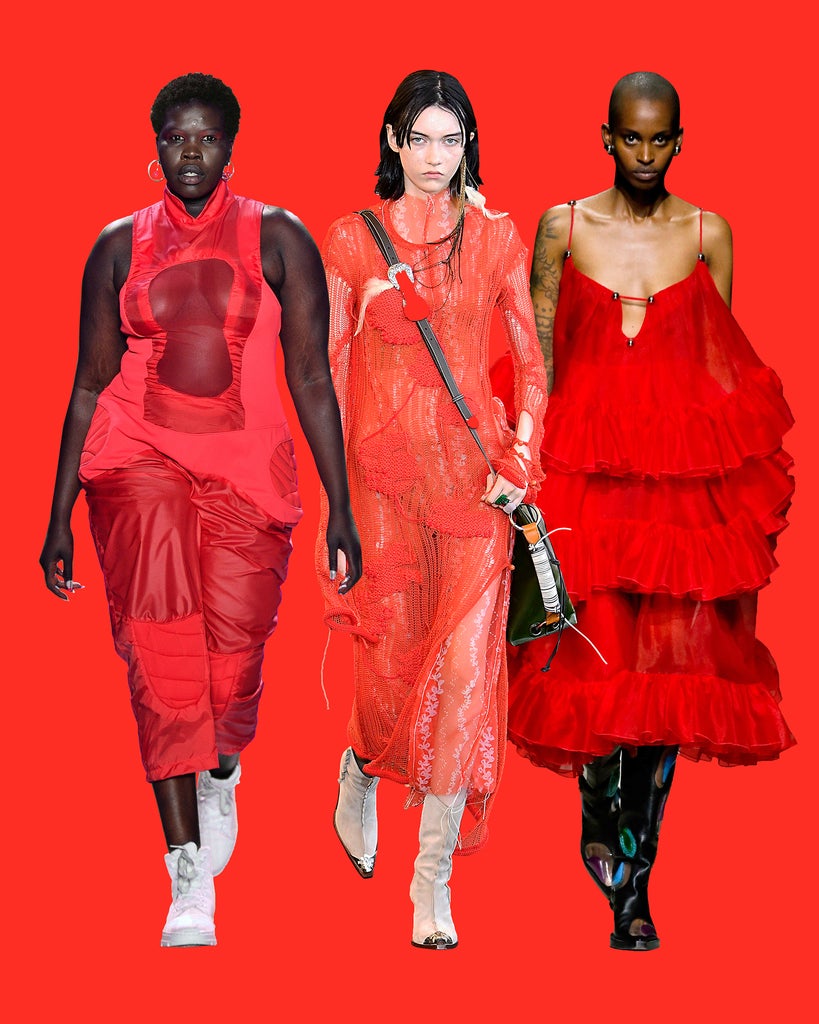 Pantone’s 18-1662 shade is called Flame Scarlet but for us the hue is no doubt that of a rich and juicy cherry tomato. “Burning bright, Flame Scarlet exudes confidence and determination,” reads the shade’s description and we couldn’t agree more: this one ain’t for wallflowers. Christopher Kane’s frothy, frilled spaghetti strap dress was our favorite at London Fashion Week, while Acne Studios and Chromat made a great case for pairing the color with ice-white shoes. Vibrant tomato hues complement all skin tones and look great when doubled up with matching lipstick, too.