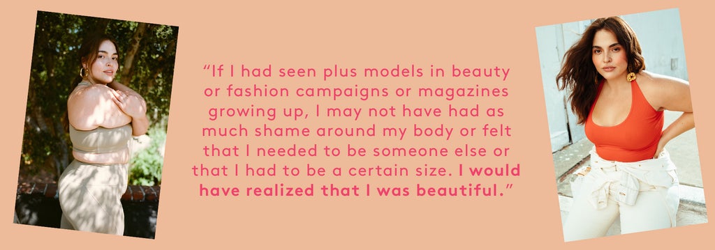 That being said, I’ve definitely been tokenized for being both plus and a woman of color. I consider myself a light-skinned Latina, and I want to see greater visibility for those who are darker than me, who are different from what we’ve always seen in the media. Everyone should feel seen. We’re still in the very beginning stages of complete inclusivity. We just need to keep pushing.
