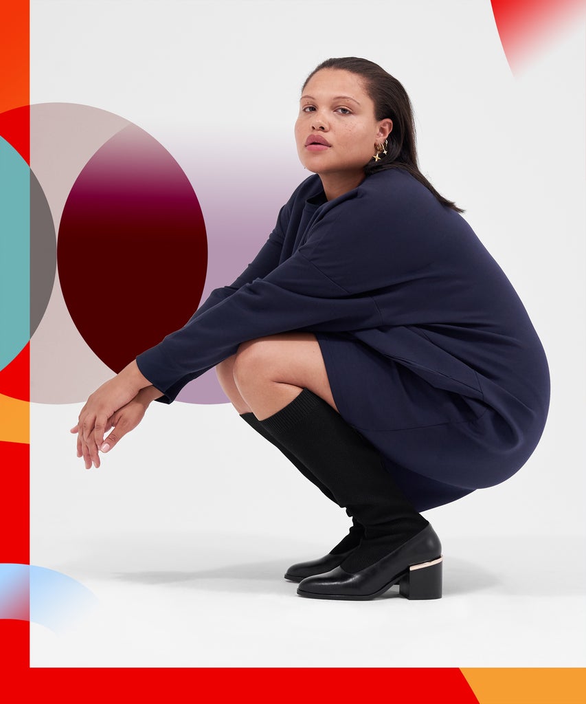 As Waldman mentions, Universal Standard carries straight and plus sizes together, rather than separating them, as most in the industry tend to do. So, for the brand to design boots, it had to create a style that would fit a shoe size 6 and 13. (Another issue in footwear? Most brands top out at size 11.) Despite the long timeline and the lofty task at hand, Waldman and her team succeeded. In 2019, Universal Standard launched two pairs of boots — an ankle boot and a knee-high boot. “We saw a positive response from shoppers such that we completely sold out of them,” Waldman says. (Despite the success, more than a year later, the brand hasn’t restocked, nor have they offered new styles.)
